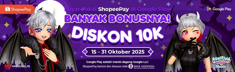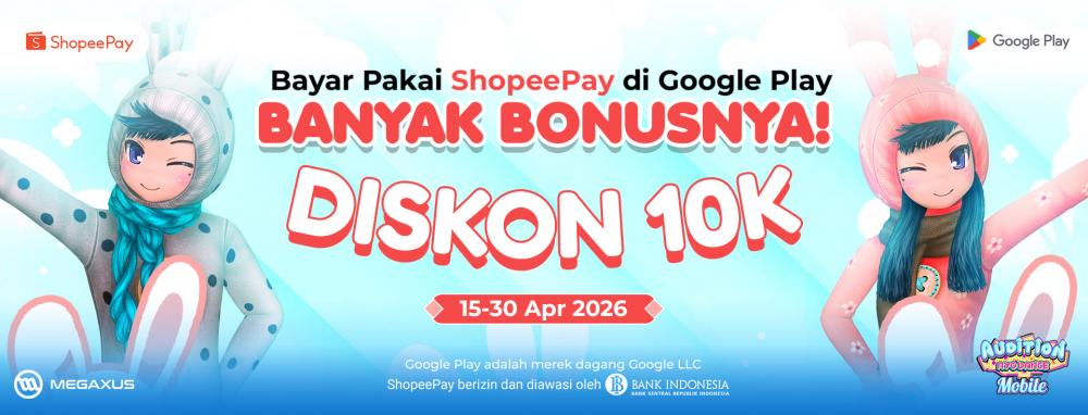 Hai Dancers~ Ada info terbaru nih, Megaxus dan ShopeePay mengadakan promo diskon lagi untuk setiap transaksi yang berlangsung di dalam game AyoDance Mobile dengan memilih pembayaran menggunakan ShopeePay di Google Play. Kamu bakalan mendapatkan diskon Rp 10.000 loh! Caranya gampang, ka...