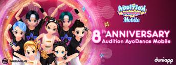 Happy 1st Anniversary Audition AyoDance Mobile!.Terima kasih dancers atas dukungan dan kepercayaan-nya selama ini untuk game Audition AyoDance Mobile..Tetap dukung dan mainkan terus game Audition AyoDance Mobile kamu ya.